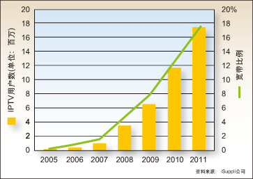 但是如果市場(chǎng)研究報(bào)告所言非虛,那么看來(lái)這種情況正在迅速發(fā)生變化。例如,iSuppli公司認(rèn)為,到2011年,中國(guó)的IPTV用戶將超過(guò)1,700萬(wàn),雖然今天這個(gè)數(shù)字還不到100萬(wàn)。如果想要實(shí)現(xiàn)上述目標(biāo),肯定還需要克服許多挑戰(zhàn),但是對(duì)芯片和系統(tǒng)制造商來(lái)說(shuō),這卻是一個(gè)為其量身打造的好機(jī)會(huì)。