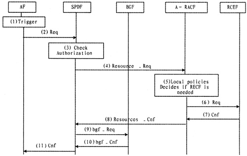 (4)如果業(yè)務請求被授權(quán),SPDF用本地策略和請求中攜帶的參數(shù)來決定怎樣處理請求。它可以發(fā)送Resource-Req給A-RACF,并發(fā)送bgf—Req給BGF;
