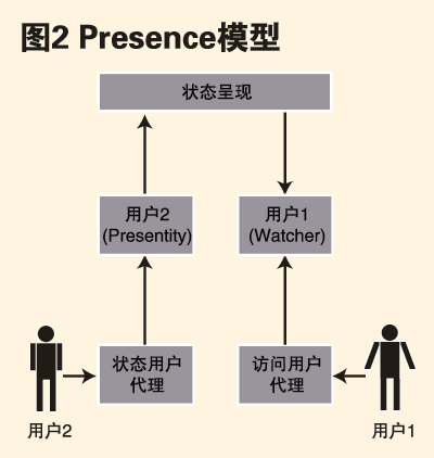 Presence用以傳達(dá)用戶狀態(tài)以及用戶通過(guò)一組設(shè)備進(jìn)行通信的能力,如:聯(lián)機(jī)、忙碌、離開(kāi)、脫機(jī)等狀態(tài)。這些狀態(tài)信息反映出與該用戶與其他用戶實(shí)現(xiàn)通信的可能性。