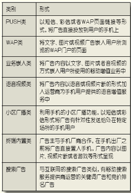 手機(jī)廣告作為新的廣告媒體,其發(fā)展前景被不少業(yè)內(nèi)專家所看好。手機(jī)廣告的發(fā)展主要經(jīng)歷了三個(gè)主要階段:以廣告PUSH為代表的信息單向傳播階段;以廣告定制和信息互動(dòng)為主的商業(yè)信息溝通階段;以電子商務(wù)為載體、以交易實(shí)現(xiàn)為最終目標(biāo)的移動(dòng)營(yíng)銷服務(wù)階段。在發(fā)展過(guò)程中,還呈現(xiàn)以下趨勢(shì):
