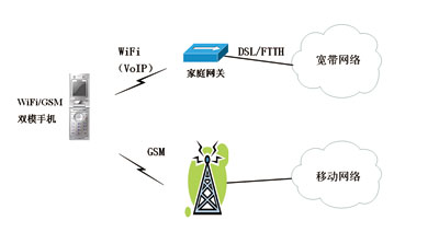 WiFi/GSM雙模手機既可以接入無線局域網(wǎng)WLAN,實現(xiàn)VoIP(VoiceoverIP)功能,又可以接入蜂窩網(wǎng),實現(xiàn)移動通信功能。但傳統(tǒng)的WiFi/GSM雙模手機在進行WiFi網(wǎng)絡和GSM網(wǎng)絡之間的切換時,無法實現(xiàn)無縫切換,用戶體驗比較差,因此前幾年這種雙模終端發(fā)展得并不理想。