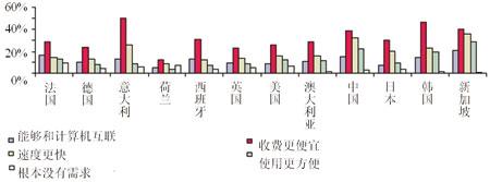 相對來說,選擇手機電視和視頻的用戶較少,即便亞洲國家也是如此。這一結(jié)果令人失望,因為視頻功能已經(jīng)推出多年,并且手機電視也在很多國家推出了幾年時間,期間,很多國家將大量資金投入到終端設(shè)備的研發(fā)上,但是調(diào)查結(jié)果表明,用戶并沒有很強的在手機上收看視頻和電視的愿望,手機電視和視頻的推廣效果并不理想。
