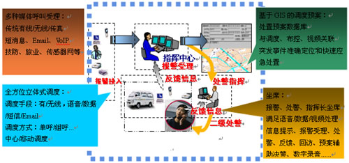 接處警應(yīng)用系統(tǒng)是應(yīng)急聯(lián)動中心的核心部分,系統(tǒng)在保證“先進、實用、可靠”的前提下,與全市應(yīng)急聯(lián)動單位實現(xiàn)互聯(lián)互通、信息共享;把接處警系統(tǒng)與GPS、有無線通信、視頻監(jiān)控、預案指揮等技術(shù)系統(tǒng)有機的結(jié)合在一起,形成“以計算機網(wǎng)絡(luò)為基礎(chǔ),以有線、無線通信為紐帶,以接處警信息傳遞、處理為核心,以資源共享和計算機輔助決策為載體的綜合性系統(tǒng)工程”,從而提高應(yīng)急聯(lián)動中心的指揮調(diào)度、輔助決策等綜合處置能力,滿足在復雜條件下指揮、調(diào)度、協(xié)調(diào)、處置城市不同種類和等級的突發(fā)事件的實戰(zhàn)需要。