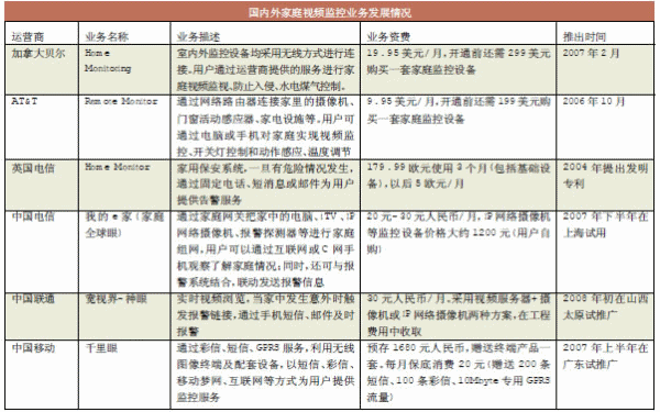 雖然數(shù)字家庭的全面實(shí)現(xiàn)還需要相當(dāng)漫長(zhǎng)的過程,但是安防報(bào)警、視頻監(jiān)控技術(shù)將會(huì)最先在數(shù)字家庭中得到應(yīng)用。目前國(guó)內(nèi)家庭監(jiān)控市場(chǎng)還處于起步階段,然而3G的高帶寬將開辟家庭視頻監(jiān)控新時(shí)代,并將催生出巨大的市場(chǎng)商機(jī)。