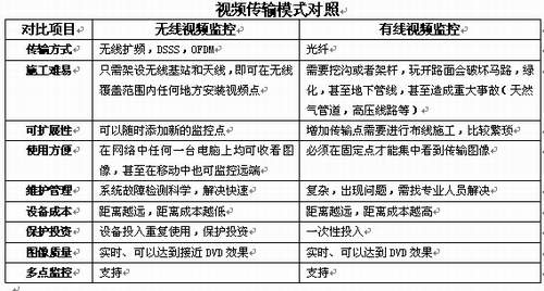 伴隨著社會(huì)經(jīng)濟(jì)和信息化技術(shù)的飛速發(fā)展,視頻監(jiān)控應(yīng)用在社會(huì)安全的各個(gè)行業(yè),平安城市、安全生產(chǎn)、森林防火、公園景區(qū)、公路交通等圍繞在人們?nèi)粘I詈凸ぷ髦車谋姸鄳?yīng)用都已經(jīng)離不開(kāi)視頻監(jiān)控。隨著和諧社會(huì)的理念深入到社會(huì)的每一個(gè)角落,視頻監(jiān)控仍將繼續(xù)上演前所未有的旺盛需求!無(wú)線有線對(duì)比表