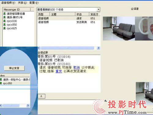 視頻會議正在流行起來。從早期的硬件式的視頻會議,正在逐漸走向軟件視頻會議。硬件式的視頻會議成熟的早,性能好,但是有局限性。比如:使用場地通常固定在會議室,功能主要的限于語音視頻,需要專門的設(shè)備,等等。軟件視頻會議的流行,是需要芯片的高速發(fā)展,網(wǎng)絡(luò)帶寬的迅速拓寬,操作系統(tǒng)對圖象處理的大幅度完善等,F(xiàn)在這些條件基本具備了。軟件視頻會議除了性能逐步的接近硬件方式外,還有使用靈活,不需固定坐在會議室,附加功能豐富,比如:文字的交流,文件傳送等。另外成本也很多倍的降低。這個過程就好象上世紀(jì)90年代,我們眼睜睜的看著微軟在10年內(nèi)把一個pc從一個小設(shè)備改成了十項全能的高級工具。軟件視頻會議成為應(yīng)用中的主流,至少在中低檔應(yīng)用中的主流,恐怕是個不可阻擋的趨勢。投影時代
