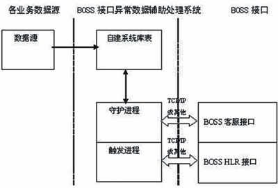 值得一提的是,作為BOSS與外圍系統(tǒng)的承接點,接口的功能最終可歸結為對BOSS與外圍系統(tǒng)數(shù)據(jù)庫的操作。其中,主動接口的實現(xiàn)邏輯對BOSS2.0接口監(jiān)控措施的實現(xiàn)至關重要。