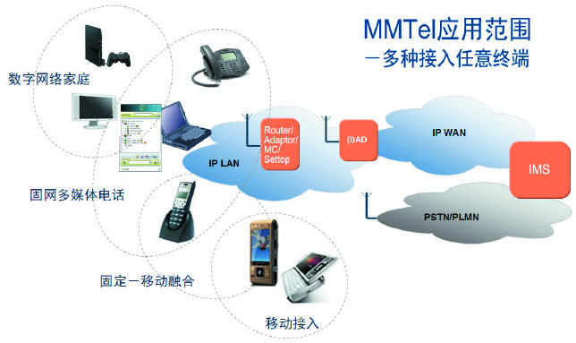 對(duì)于消費(fèi)者而言,MMTel意味著自由度更高的溝通方式:無論是固話、手機(jī)還是PC,都可以同時(shí)進(jìn)行語音、視頻通話,文字、圖片、音像的傳送或者共享等多項(xiàng)業(yè)務(wù),而且能夠在固定終端和移動(dòng)終端之間自由切換。對(duì)于運(yùn)營商來說,MMTel則意味著從語音通話和短消息到多媒體電話業(yè)務(wù)的一次全面升級(jí)。MMTel標(biāo)準(zhǔn)中定義了多種多樣的多媒體業(yè)務(wù)和補(bǔ)充業(yè)務(wù),一方面豐富了原有的電路交換業(yè)務(wù),為運(yùn)營商帶來新的利潤源泉,另一方面又融合了互聯(lián)網(wǎng)多媒體業(yè)務(wù)的諸多優(yōu)勢(shì),可以幫助全業(yè)務(wù)運(yùn)營商有效地吸引終端用戶。