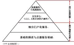擁有4億多注冊用戶的騰訊,占有中國即時通信80%的市場份額,互聯(lián)網(wǎng)行業(yè)贏家通吃的定律顯露無疑,騰訊在海量用戶群基礎(chǔ)上開發(fā)的各種業(yè)務(wù)都在行業(yè)排名前列。當(dāng)電視服務(wù)的規(guī)模用戶群得以穩(wěn)固,基于用戶規(guī)模之上的多元化服務(wù)集成成為可能,對電視服務(wù)形成高度依賴的用戶群具備了價值挖掘的條件。人人交互、人機(jī)交互依托基礎(chǔ)的電視分眾門戶化應(yīng)用,形成了最初的用戶使用習(xí)慣;依托電視分眾門戶化集成的積累,建立用戶識別、用戶分析、收視分析、用戶數(shù)據(jù)交換的技術(shù)體系,用以支撐未來多元化娛樂與服務(wù)的開發(fā);贗PTV的交互能力,依托電視終端的易用性與舒適性,用戶價值、終端價值被充分挖掘,電視服務(wù)開始對其他媒介形式(含互聯(lián)網(wǎng))的用戶形成吸納。圍繞交互、商務(wù)需求的電子貨幣體系逐漸完善,電視進(jìn)入可有效運營、可便捷支付的良性的產(chǎn)業(yè)循環(huán),IPTV多元化業(yè)務(wù)之門打開。
