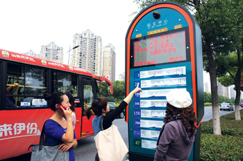 近年來,隨著江蘇蘇州經(jīng)濟(jì)的快速發(fā)展,機(jī)動車保有量激增與道路通行效率下降之間的矛盾日益顯現(xiàn),公交車運(yùn)行不準(zhǔn)時(shí)、候車時(shí)間遠(yuǎn)遠(yuǎn)背離乘客期望已經(jīng)成為突出問題,蘇州智能公交建設(shè)也因此被提上議事日程。2009年,智能公交項(xiàng)目作為蘇州工業(yè)園區(qū)成立15周年的獻(xiàn)禮,由蘇州工業(yè)園區(qū)管委會立項(xiàng),蘇州工業(yè)園區(qū)城市管理局、公交公司負(fù)責(zé)建設(shè),中國移動蘇州分公司總承建,多方聯(lián)手共同打造智能公交新模式。該項(xiàng)目榮獲第四屆全國信息化應(yīng)用、通信技術(shù)創(chuàng)新優(yōu)秀成果金獎(jiǎng)。圖:市民在站臺查看電子站牌信息