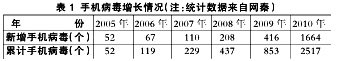 移動(dòng)智能終端與移動(dòng)應(yīng)用商店在向用戶提供豐富多彩的應(yīng)用軟件和數(shù)字內(nèi)容的同時(shí),智能終端病毒、應(yīng)用軟件吸費(fèi)、非法信息傳播等安全問題不斷暴露。移動(dòng)智能終端已經(jīng)成了病毒發(fā)威的新戰(zhàn)場,手機(jī)僵尸、給你米等手機(jī)病毒破壞終端功能,惡意吸取資費(fèi),竊取用戶隱私,極大地?fù)p害了用戶利益。據(jù)網(wǎng)秦統(tǒng)計(jì),2010年新增的手機(jī)病毒數(shù)是2004~2009年手機(jī)病毒總數(shù)的近兩倍(見表1),預(yù)計(jì)共感染手機(jī)800萬部以上。據(jù)報(bào)道,我國至少有10家Android平臺(tái)的吸費(fèi)SP或渠道公司,抽樣顯示近40%的Android常見應(yīng)用程序被植入惡意吸費(fèi)代碼。在信息內(nèi)容安全方面,包含色情暴力、反動(dòng)言論等信息的應(yīng)用軟件曾出現(xiàn)在App Store中,危害青少年健康成長,影響社會(huì)穩(wěn)定團(tuán)結(jié)。2010年10月,美國杜克大學(xué)等對30款A(yù)ndroid應(yīng)用進(jìn)行分析,發(fā)現(xiàn)其中有三分之二的應(yīng)用通過分享用戶地理定位數(shù)據(jù)或信息的方式侵犯用戶隱私,半數(shù)應(yīng)用未經(jīng)用戶允許將用戶地理定位信息發(fā)送給廣告網(wǎng)絡(luò)或數(shù)據(jù)分析公司。我國還存在智能手機(jī)終端內(nèi)置應(yīng)用軟件和第三方應(yīng)用軟件涉黃或吸費(fèi)、手機(jī)WAP網(wǎng)站涉黃等問題。另外,黑莓獨(dú)特的加密技術(shù)引發(fā)擔(dān)憂,德國等紛紛要求監(jiān)控黑莓通信服務(wù)。