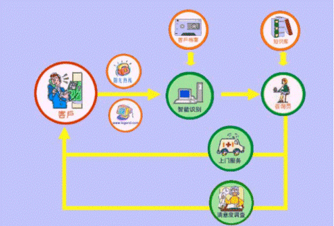 售后技術(shù)咨詢及報修:用戶購機之后,同樣可以通過電話或者網(wǎng)絡(luò)進入呼叫中心系統(tǒng),系統(tǒng)會通過用戶檔案庫得到用戶的詳細信息并為他尋找合適的咨詢員,咨詢員會依據(jù)共享的知識庫為用戶解決問題,如果用戶的機器需要上門服務(wù)。咨詢員會通過網(wǎng)絡(luò)查詢?nèi)珖⻊?wù)渠道的工程師和備件情況,并安排工程師迅速上門為用戶服務(wù)。維修完成一天后,系統(tǒng)會自動產(chǎn)生電話呼出,由咨詢員直接詢問用戶對服務(wù)過程的滿意程度,以便改進我們的工作。
