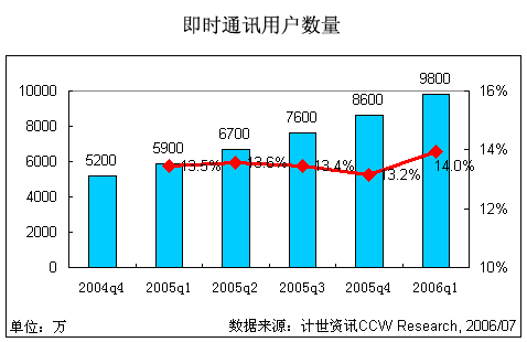 2006年Q1中國即時通訊注冊賬戶達到7.4657億 2006-06-30 |
