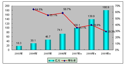 在《2006-2007年中國增值服務(wù)提供商發(fā)展趨勢及市場機會研究報告》中顯示,2006年,我國WAP業(yè)務(wù)發(fā)展勢頭迅猛,市場總量由2005年的46.7億元增長到74.1萬元,從用戶數(shù)情況來看,2006年年底,WAP業(yè)務(wù)用戶總數(shù)達(dá)到4798.4萬戶。2007年,WAP業(yè)務(wù)仍然會有長足的發(fā)展,絕對增長將有所提高,需要新的技術(shù)和業(yè)務(wù)內(nèi)容,以創(chuàng)造新的增長,市場總量預(yù)計將超過100億元。