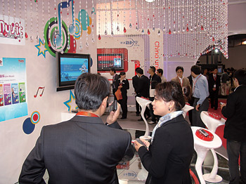 在通信展上,中國(guó)移動(dòng)在展場(chǎng)核心區(qū)展示了面向2008年奧運(yùn)會(huì)的奧運(yùn)無(wú)線業(yè)務(wù)和全曲下載“音樂(lè)隨身聽(tīng)”,中國(guó)聯(lián)通則重點(diǎn)展示了其最具特色的整首音樂(lè)下載業(yè)務(wù),吸引了大批觀眾。許多觀眾還在中國(guó)移動(dòng)和中國(guó)聯(lián)通無(wú)線音樂(lè)展臺(tái)前,現(xiàn)場(chǎng)聆聽(tīng)各種動(dòng)聽(tīng)的歌曲,體驗(yàn)無(wú)線音樂(lè)的魅力?梢哉f(shuō),手機(jī)音樂(lè)成為手機(jī)娛樂(lè)業(yè)務(wù)中最受人們關(guān)注的亮點(diǎn)。