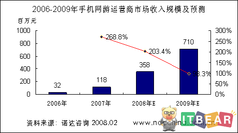據(jù)第21次中國互聯(lián)網(wǎng)發(fā)展統(tǒng)計報告(CNNIC)資料顯示,我國網(wǎng)民總數(shù)達到2.1億,位居世界第二位。目前已有5040萬人在使用手機上網(wǎng)接入方式,約占網(wǎng)民總數(shù)的1/4(24%)。來自信息產(chǎn)業(yè)部的統(tǒng)計資料顯示,截至2007年12月31日我國移動手機用戶達到5.47億,這些都為手機網(wǎng)游提供了良好的發(fā)展環(huán)境。諾達咨詢
