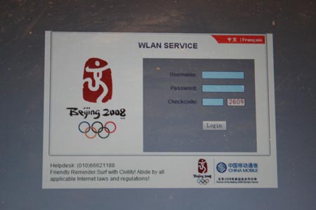 8月27日下午,奧組委技術(shù)部部長楊義春在回顧本屆奧運會通信保障工作時向騰訊科技表示,無線局域網(wǎng)WLAN在本屆奧運會上的成功應(yīng)用,為全球各地前來報道奧運的媒體記者提供了極大的便利。中國移動所提供的WLAN服務(wù)界面