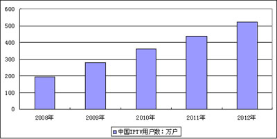 經過2007年的低潮與失望,2008年被業(yè)界普遍認為是IPTV的拐點之年。但就上半年產業(yè)鏈各環(huán)節(jié)的表現來看,IPTV仍是電信運營商的關注重點,系統(tǒng)設備商的應用創(chuàng)新為IPTV的發(fā)展開拓出行業(yè)應用的廣泛市場。2008年6月,中國電信集團集采57.4萬IPTV機頂盒,更為整個產業(yè)注入了信心。賽迪顧問預計:未來幾年,IPTV市場將處于平穩(wěn)發(fā)展期,到2012年,中國IPTV用戶數將達到522.9萬,IPTV發(fā)展后市可期。