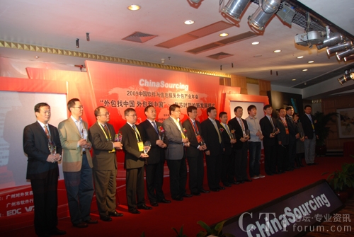 CTI論壇(ctiforum)12月23日消息(記者 張塵):在2009年12月23日以“外包找中國,外包到中國——復蘇時期的新發(fā)展模式”為主題的“ChinaSourcing2009軟件與信息服務外包產業(yè)年會”上,CTI論壇總經理兼市場總監(jiān)秦克旋先生榮獲得由工信部頒發(fā)的“2009中國軟件與信息服務外包產業(yè)年度風云人物”獎。本屆年會是在工業(yè)和信息化部軟件服務業(yè)司,廣東省經濟和信息化委員會的指導下,由工業(yè)和信息化部軟件與集成電路促進中心、廣州市科技和信息化局聯合主辦,傾力打造的年度行業(yè)盛會。圖: 婁勤儉部長跟所有獲得年度風云人物獎的獲獎嘉賓合影