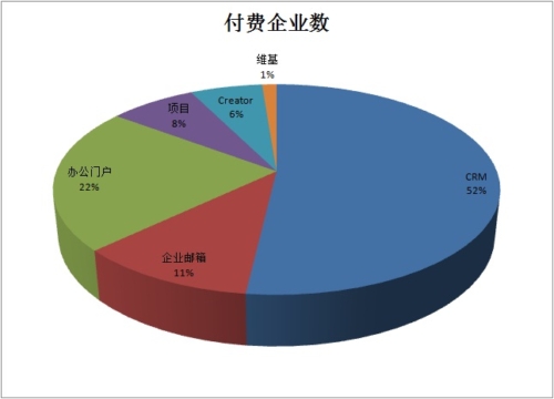 從付費企業(yè)數(shù)上看,目前最為成熟而流行的企業(yè)在線應用模式客戶關(guān)系管理(CRM)依舊在百會付費用戶中占據(jù)半壁江山,用戶的高認知度和百會CRM優(yōu)秀的產(chǎn)品品質(zhì)也是企業(yè)選擇CRM作為入駐百會第一站的主要動因。但對于百會來說,CRM并不代表全部,還有另外一半的付費用戶來自于其他多種類型的應用。