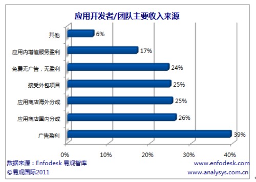 易觀國際(Analysys International)分析認(rèn)為應(yīng)用開發(fā)者難以獲取盈利分成的主要原因在于用戶對應(yīng)用本身沒有付費下載習(xí)慣,應(yīng)用商店缺少對應(yīng)用的推廣,但應(yīng)用開發(fā)者難以盈利也和移動應(yīng)用同質(zhì)化嚴(yán)重,難以被用戶認(rèn)可本身強(qiáng)相關(guān)。