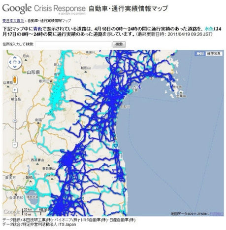 “探針”是汽車(chē)物聯(lián)網(wǎng)的重要技術(shù)之一,此前本田已經(jīng)提供了稱(chēng)為“網(wǎng)上導(dǎo)航”的獨(dú)自服務(wù)。日本ITS協(xié)會(huì)希望推動(dòng)探針技術(shù)的通用化,但是廠商之間存在競(jìng)爭(zhēng)關(guān)系,難以協(xié)同一致。本次,在通行圖上,本田、先鋒、豐田、日產(chǎn)汽車(chē)都提供了信息,實(shí)現(xiàn)了共享信息,對(duì)救災(zāi)物資運(yùn)輸?shù)穆窙r信息提供了有益參考,“地震時(shí)方顯汽車(chē)物聯(lián)網(wǎng)的價(jià)值”(八木浩一)。