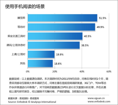 本次調(diào)研時(shí)間為2011年9月啟動(dòng),問卷在線時(shí)間1個(gè)月,調(diào)查采用移動(dòng)互聯(lián)網(wǎng)大樣本調(diào)研方式,問卷主要在易觀官網(wǎng)調(diào)研渠道、3G門戶、TOM等合作伙伴渠道進(jìn)行問卷推廣。對于回收的數(shù)據(jù)通過SPSS 進(jìn)行交叉數(shù)據(jù)分析處理,并在此基礎(chǔ)上撰寫研究報(bào)告,經(jīng)過剔除不完整問卷、嚴(yán)格的邏輯、加權(quán)配比處理。