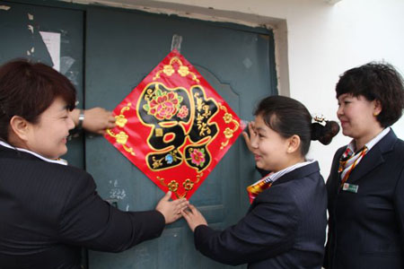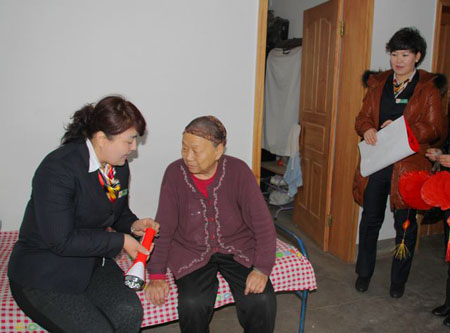 “阿姨,春節(jié)快到了,我們來看看您,前兩天已經幫您把電充上了,這次給您帶了個手電,用著它以后到地下室可以照個亮!标犻L阿依古麗向丁阿姨說明來意,還跟丁阿姨試了試,手電是充電式的,不用換電池,丁阿姨挺高興的。臨走時,阿依古麗還在她家門上貼了個大紅的“!弊,祝福老人家新年快樂。