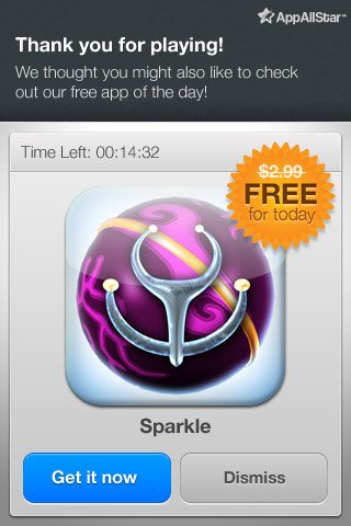 怎樣有效的將應用貨幣化呢?簡單的說,我們首先需要判斷當前用戶群的客戶終身價值,然后通過一系列方法使該價值得到持續(xù)的提升;這些方法包括“應用內”的普通廣告、產品體驗廣告、來自相同發(fā)布商的其他應用信息、相關增值產品與服務等。下圖所示的就是在應用中推銷另一款產品的典型案例。