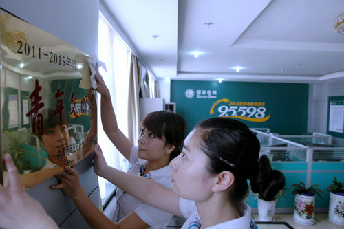 6月15日,從虞城供電公司團(tuán)委獲悉,該公司“95598”電力客戶(hù)服務(wù)中心榮獲共青團(tuán)商丘市委頒發(fā)的2011至2015年度青年文明號(hào)榮譽(yù)稱(chēng)號(hào),這是繼該中心獲得市級(jí)“黨員先鋒崗”后的又一榮譽(yù)。圖為:6 月15日清晨,虞城供電公司95598兩名座席人員在班前對(duì)榮譽(yù)匾牌進(jìn)行細(xì)心的呵護(hù)。