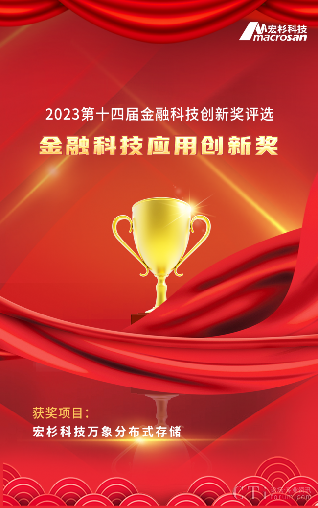 本次評選旨在表彰2023年度在金融科技創(chuàng)新和業(yè)務(wù)發(fā)展方面取得突出成果的單位。此次獲獎充分體現(xiàn)了專家評審們對宏杉科技在金融科技領(lǐng)域創(chuàng)新實力及實踐成果的認(rèn)可。