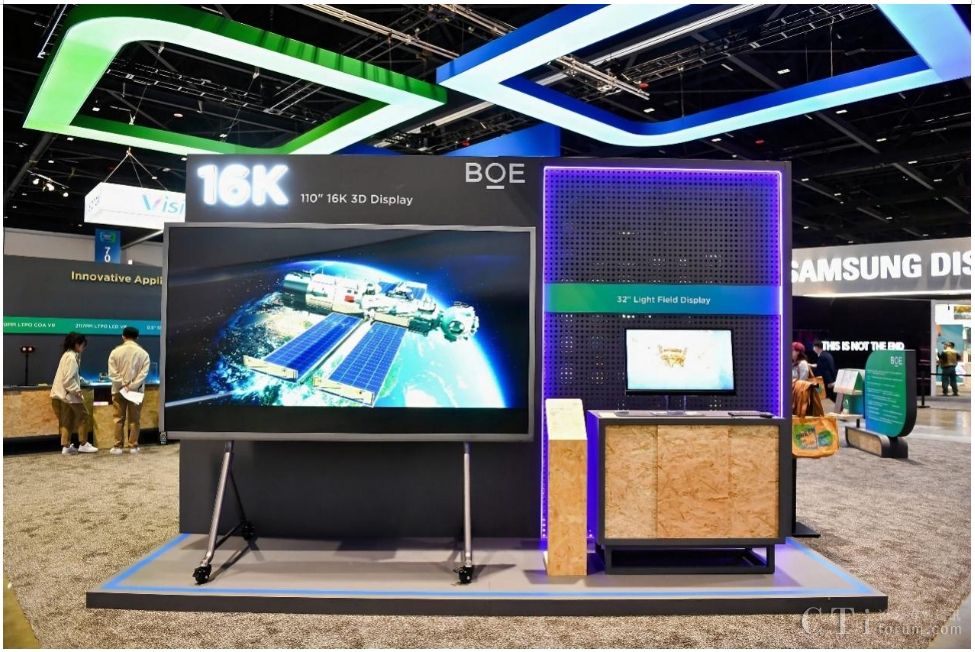 本次SID,BOE(京東方)攜三大技術品牌重磅首發(fā)的多款行業(yè)領先顯示技術和產(chǎn)品驚艷亮相。步入展區(qū),首先映入眼簾的是BOE(京東方)重磅首發(fā)的全球首款16K 110英寸超大尺寸裸眼3D顯示屏,并以超高清、超高分辨率、多視點、廣色域等優(yōu)勢突破了顯示行業(yè)的創(chuàng)新高度,該產(chǎn)品搭載高色域Mini LED背光技術以及BOE(京東方)自主研發(fā)的16K交織排圖算法,3D視角擴大至60°,廣泛應用于廣告、會議、教育等多元化場景。