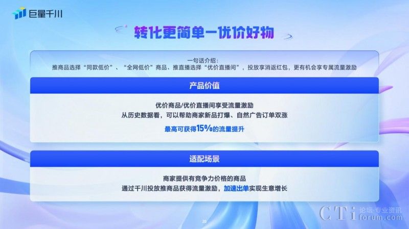 提升用戶的購買體驗也是商家的關注點,隨著消費者購物習慣的不斷變化,94%的消費者在購物時有比價的習慣,因此商家在激勵的競爭下提供有競爭力的商品疊加穩(wěn)定的價格體系,是實現(xiàn)有效經(jīng)營和提升用戶體驗的關鍵。為更好的滿足商家需求,讓好產(chǎn)品被更多的人看到,具有價格力的「優(yōu)價好物」,會為商家增長帶來新動力,讓轉化變得更簡單。