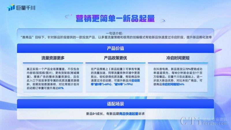 此外,商品全域推廣為商品推廣提供一站式解決方案,是以商品全域ROI為優(yōu)化目標,釋放全域流量帶來的增效價值,提供貨架場、內容場增長雙引擎,幫助客戶在追求商品全域ROI達成的同時,最大化提升商品交易額,更好的滿足客戶的實際經(jīng)營目標。在商品全域推廣下,短視頻/商品卡/圖文體裁統(tǒng)一調控,無需糾結選擇推廣商品的投放工具,一站式全域流量觸達。