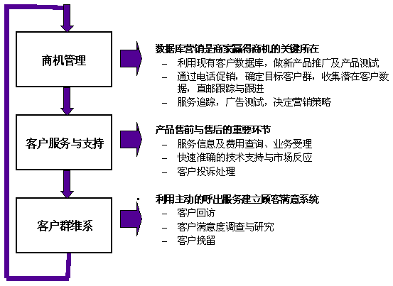 。。呼叫中心能夠幫助企業(yè)直銷,挖掘和驗(yàn)證商機(jī),同時(shí)通過分銷商管理,傳遞商機(jī),提供最快的支持,同時(shí)在公關(guān)活動(dòng)中,呼叫中心可以用于招募參加者,或通過電話呼入支持客戶的活動(dòng),客戶歷史記錄的建立,以及客戶資料數(shù)據(jù)庫的完備,將幫助企業(yè)開拓?cái)?shù)據(jù)營(yíng)銷市場(chǎng),通過呼出和呼入方式,建立用戶數(shù)據(jù)庫,挖掘潛在商機(jī)。 可見,利用呼叫中心的利潤(rùn)循環(huán)是執(zhí)行客戶關(guān)系管理的核心基礎(chǔ)。如下圖所示: