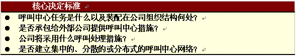 。。呼叫中心的主要任務將影響許多重要決定,這些決定關于呼叫中心功能、呼叫處理措施、內部或外部聯(lián)絡措施,以及呼叫中心結構,即集中型或分散型。