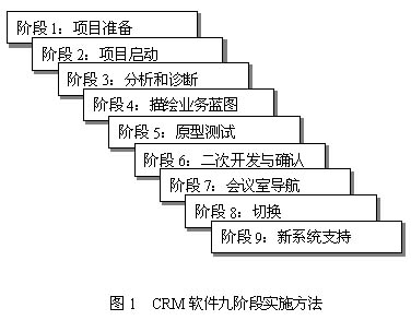 CRM軟件產(chǎn)品本質(zhì)上是面向企業(yè)前臺應(yīng)用的管理信息系統(tǒng)。其本身就蘊含了CRM的管理思想和先進的信息技術(shù)。與ERP系統(tǒng)的實施類似,CRM軟件系統(tǒng)的實施過程遵循了項目管理的科學方法。