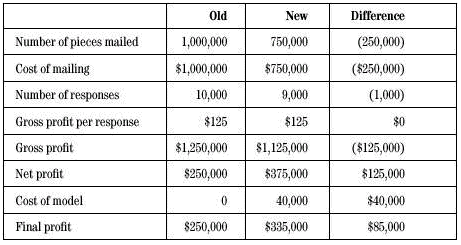 請注意,郵寄的純利潤增加了$125,000,甚至你扣除由于數(shù)據(jù)采集而產(chǎn)生的軟件、硬件即人力資源方面的$40,000,純利潤還增加了$85,000。建模的投入轉(zhuǎn)化成了200%的收益,這遠遠超過了BB&CC對這一項目的ROI要求。