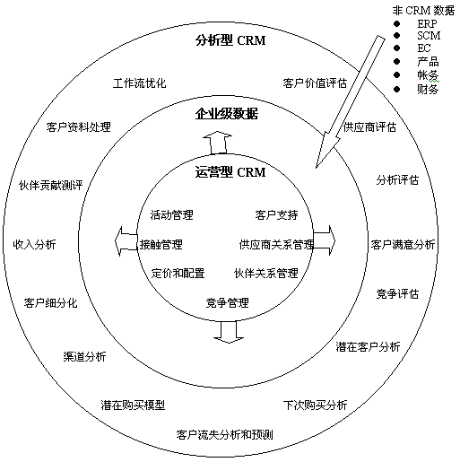 能提供上述問(wèn)題和其他企業(yè)問(wèn)題的客戶信息,就能夠?qū)蛻舴⻊?wù)、銷售技巧和隨后的促銷戰(zhàn)略作出關(guān)鍵決策。通過(guò)對(duì)“運(yùn)營(yíng)型”CRM數(shù)據(jù)與來(lái)自于全公司的信息進(jìn)行集成,公司便能夠開(kāi)始執(zhí)行分析型CRM;并且執(zhí)行后,可以作出真正的“以客戶為中心”的企業(yè)決策。