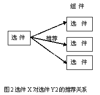 當(dāng)客戶選擇某個選件時,系統(tǒng)自動提示推薦另一選件,這種關(guān)系稱為選件的推薦關(guān)系。比如,在配置手機(jī)產(chǎn)品時,選擇了某電話選件,則推薦使用特定充電器型號選件,雖然其他類似的選件也可以適用。如圖2所示,雖然選件X可以與組件Y內(nèi)的選件Y1,Y2,Y3搭配,但推薦使用Y2。