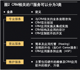----同時,我們通過圖2可以發(fā)現(xiàn),CRM相關的IT服務也并不缺乏,可以滿足被服務方從高端到低端的各種可能的需要。這也可以說是“萬事俱備”的第四個方面。
