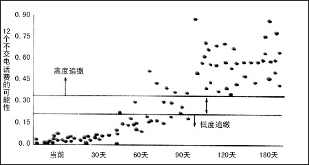 這樣,Bell Atlantic就能計算出有關(guān)客戶的概率可能性,包括客戶從一個月未交電話費(fèi)到兩個月未交的可能性;客戶從三個月未交電話費(fèi)到變成壞債的可能性,以及壞債客戶變成死債客戶的可能性。同時,還對追交拖欠電話費(fèi)用的策略提供線索,確認(rèn)哪些帳戶應(yīng)該進(jìn)行追債活動;哪些帳戶有可能拖欠電話費(fèi);并且提供量化的追債策略,對不同的帳戶采用不同的辦法。