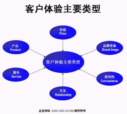 一家企業(yè)(或一個(gè)品牌)可以直接或間接讓客戶體驗(yàn)的,主要類別為產(chǎn)品、服務(wù)、關(guān)系、價(jià)格、便利性、品牌形象。在不同行業(yè),對(duì)不同目標(biāo)市場(chǎng)與客戶,每種類別的重要性各不一樣。但最終客戶體驗(yàn)的好與壞都離不開這些因素,亦是客戶為什么光顧(或不光顧)的原因(見(jiàn)圖三、客戶體驗(yàn)主要類型)。