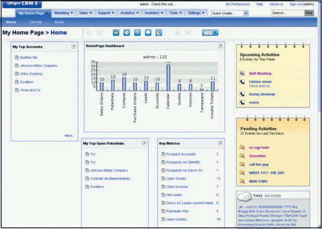 vtiger CRM是一個(gè)主要面向中小企業(yè)的開放源碼CRM軟件,是一款易安裝、企業(yè)級(jí)、免費(fèi)的CRM軟件。它建立在許多開源組件上,提供更豐富的使用界面、報(bào)表、轉(zhuǎn)移工具,并支持多種數(shù)據(jù)庫(kù)。vtiger CRM使用快速高效且久經(jīng)考驗(yàn)的LAMP/WAMP(Linux/Windows、Apache、MySQL和PHP)技術(shù)以及其他開源工具開發(fā)。