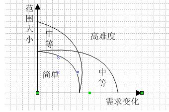如對于一些成長型的企業(yè),他們由于業(yè)務(wù)、客戶等等都處于一個(gè)成長期,所以在項(xiàng)目的實(shí)施過程中,這個(gè)需求變化可能會(huì)比較頻繁。根據(jù)筆者的經(jīng)驗(yàn),一個(gè)成長型的企業(yè),從需求提出到最后項(xiàng)目上線,中間可能50%以上的需求會(huì)進(jìn)行不同程度的調(diào)整。毋庸置疑,這就會(huì)給項(xiàng)目帶來不少的挑戰(zhàn)。從理論上說,實(shí)施顧問遇到這種情況,應(yīng)該建議企業(yè)先暫時(shí)擱置這個(gè)項(xiàng)目。等到需求穩(wěn)定了,再上這個(gè)項(xiàng)目。但是實(shí)施顧問往往不會(huì)這么做,因?yàn)檫@會(huì)影響到他們自己企業(yè)的業(yè)績。為此實(shí)施顧問在遇到這種情況的時(shí)候,只有退而求其次了。即當(dāng)需求變化比較大的時(shí)候,只有通過縮小項(xiàng)目的范圍,來減少需求的絕對數(shù)量。需求的絕對數(shù)量減少了,那么需求的變化量也會(huì)降低。從而可以達(dá)到降低項(xiàng)目難度的目標(biāo),可以將項(xiàng)目的難度設(shè)置在中等難度這個(gè)級別。