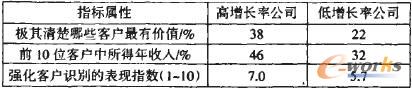 對《財富》雜志排名前l(fā)000位公司的200位經(jīng)理調(diào)查后得出結論,企業(yè)增長性與清楚的識別客戶有明顯的聯(lián)系(見表1)。該表反映了高增長率的企業(yè)比低增長率的企業(yè)更加懂得客戶識別的重要性,并運用技巧來強化核心客戶為企業(yè)創(chuàng)造更多價值。