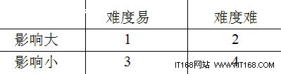 如果CRM項(xiàng)目的規(guī)模比較大,如涉及到集團(tuán)型或者項(xiàng)目集成的業(yè)務(wù),那么可以對(duì)以上的圖表進(jìn)行進(jìn)一步細(xì)化,以實(shí)現(xiàn)對(duì)需求的精細(xì)化管理。如可以將難度分為簡(jiǎn)單、中等、困難、暫時(shí)不考慮等幾個(gè)類別。同時(shí)可以將影響成果,也分為大、中、小等三個(gè)級(jí)別。具體要?jiǎng)澐譃槎鄠(gè)檔次,主要是根據(jù)需求的個(gè)數(shù)來(lái)說(shuō)的。如筆者在實(shí)際項(xiàng)目中,如果需求的個(gè)數(shù)少于100個(gè),那么使用兩個(gè)級(jí)別基本上可以滿足了。如果需求個(gè)數(shù)超過(guò)100、少于300,那么可以再增加一個(gè)級(jí)別,以此類推。
