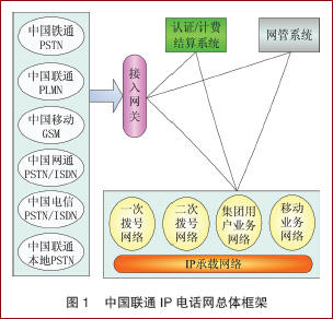 中國聯(lián)通IP電話網自1999年6月入運營以來,經過一期、二期和三期工的建設,目前,網絡已覆蓋中國329個地市,E1端口規(guī)模超過1.8萬個,成為全球最的IP電話網絡。網絡的話務量已經達到月近10億分鐘,已是世界上流量最大的電話網絡。中國聯(lián)通IP電話網總體框架圖1所示,包括IP承載網絡、業(yè)務網絡(包式括一次撥號業(yè)務網、二次撥號業(yè)務網、集團用戶業(yè)務網和移動用戶業(yè)務網)、IP電話網絡管理設備(如計費結算系統(tǒng)、網管系統(tǒng)等)、與各類本地網絡連接的接入網關等部分。