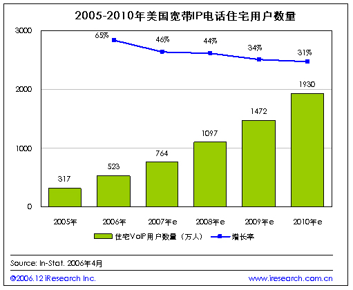 2007年美國住宅IP用戶數(shù)量將達到764萬