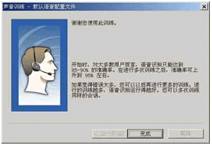 當(dāng)你15分鐘的訓(xùn)練全部結(jié)束后,將會看到如圖12所示的對話框,此時原來默認(rèn)的用戶配置文件將用剛才所收集的訓(xùn)練數(shù)據(jù)進行更新,稍候片刻,你就會看到如圖13所示的對話框,告訴你語音訓(xùn)練已經(jīng)結(jié)束。